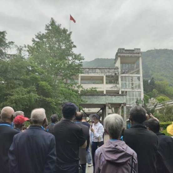 活动的最后一站是四川特大地震漩口中学遗址。走进这片曾经遭受重创的土地,眼前的残垣断壁无声地诉说着那场灾难的惨烈。坍塌的教学楼、扭曲的钢筋水泥,仿佛将时间定格在了 2008 年 5 月 12 日那个令人痛心的时刻。在遗址现场,讲解员详细介绍了地震发生时的情况以及抗震救灾过程中涌现出的感人事迹。在灾难面前,全国人民众志成城、抗震救灾,展现出了强大的凝聚力和不屈的民族精神。从救援人员争分夺秒抢救生命,到志愿者们无私奉献,再到受灾群众顽强自救,每一个场景都让人感受到生命的坚韧与伟大。其中一位老党员感慨到:“在面对困难和灾难时,党和人民始终团结一心,这种伟大的抗震救灾精神同样是红色基因的重要组成部分,激励着我们在新时代不断战胜各种艰难险阻”。