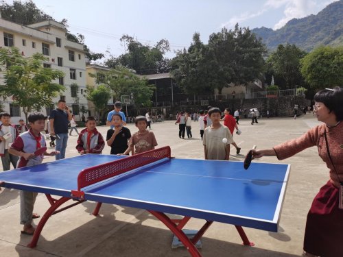 2024年10月下旬,考虑到有强健的身体才能更好地为人民服务,杨明蕊同志主动对接昆明的几位爱心人士为村委会募捐一张乒乓球桌,配套球拍和乒乓球。球桌入村后因当时辖区内三家小学校园里的三张乒乓球桌的桌面都破烂不堪无法使用,2024年11月1日,在驻村书记的建议和主导下,驻村工作队一起将购赠的乒乓球桌捐赠给三家小学。