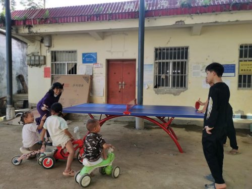 2025年1月份,考虑到闸门村委会22个自然村小组有很多村小组没有任何体育设施健身娱乐,而且孩子们周末和节假日放学回家因为父母离家在外没有人引导,多数沉迷于他们父母为了方便联系为他们购置的智能手机,杨明蕊同志再次主动对接前期已经建立良好合作关系的昆明爱心人士为辖区内的牛场,龙潭坝,九股水,大树脚,线滩5个自然村小组购赠5张的新国标大翻边户外标准比赛乒乓球桌,10副配套乒乓球拍和球,并亲自随同快递员逐一送到各个村小组公共活动区域安放。同时,利用周末和节假日休息时间到各个村小组组织和引导孩子们打乒乓球。每次去村里陪孩子们打乒乓球,孩子们都会忍不住说,“杨老师,如果你今天不来教我们打球,我们无聊的话就只能一天玩手机了。”